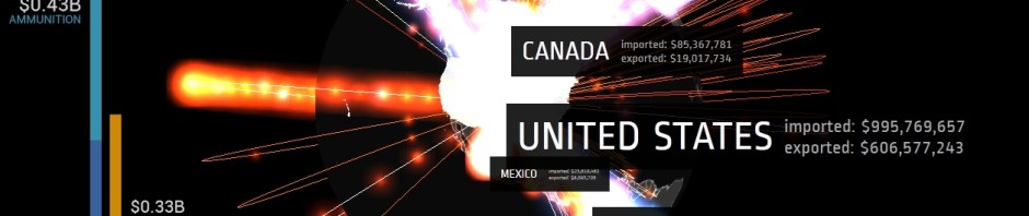 Small arms such as revolvers, assault rifles and light machine guns represent a multi-billion dollar industry. The Google Ideas initiative on illicit networks has created an interactive data visualisation of the global small arms and ammunition trade. The visualisation maps the arms trade giving us an invaluable understanding of who is selling and buying small arms and ammunition.